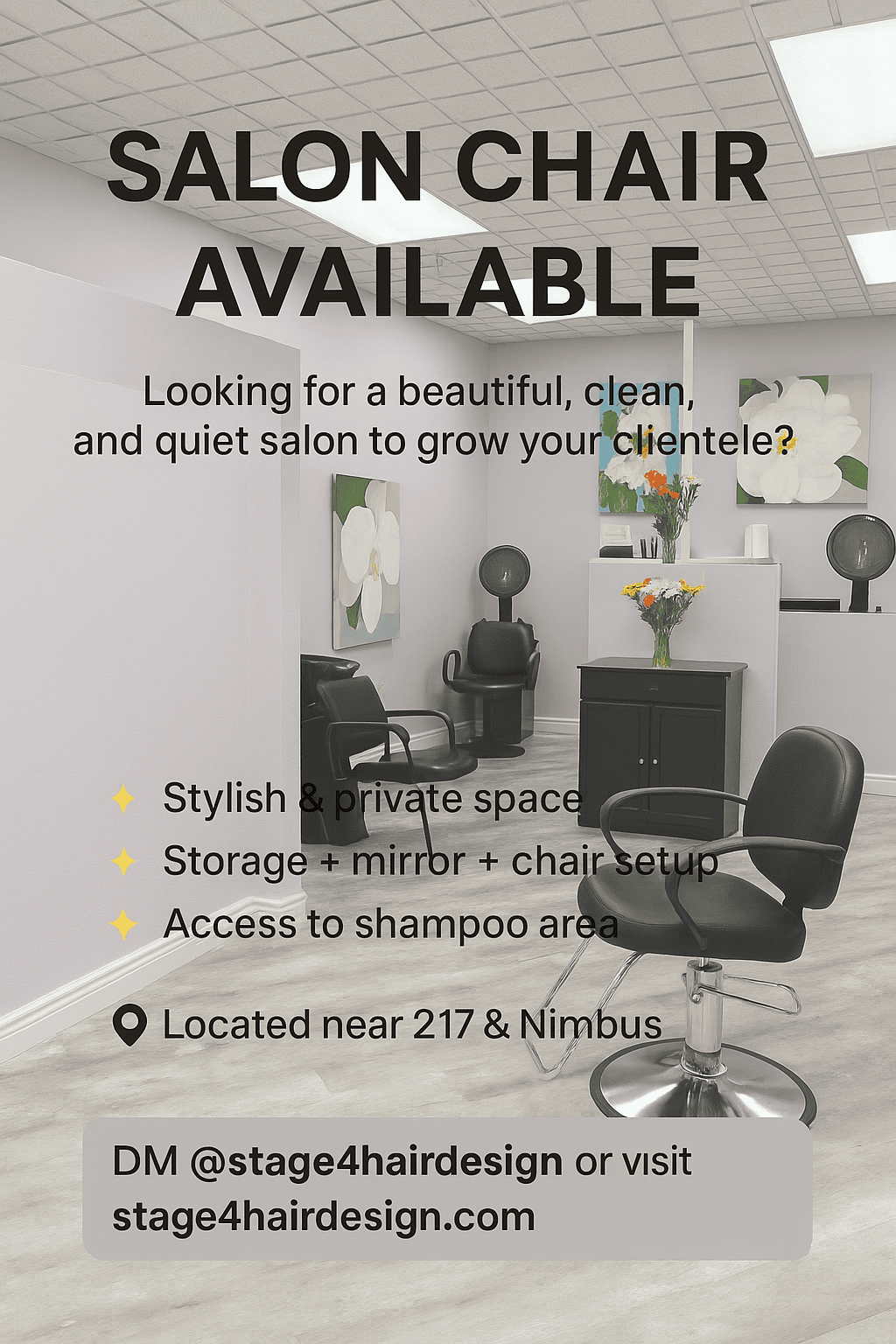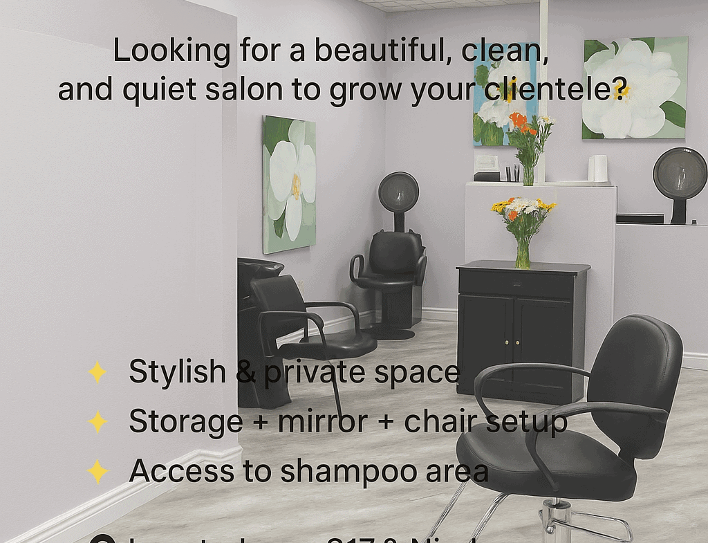 Looking for a beautiful, clean, and quiet salon to grow your business?