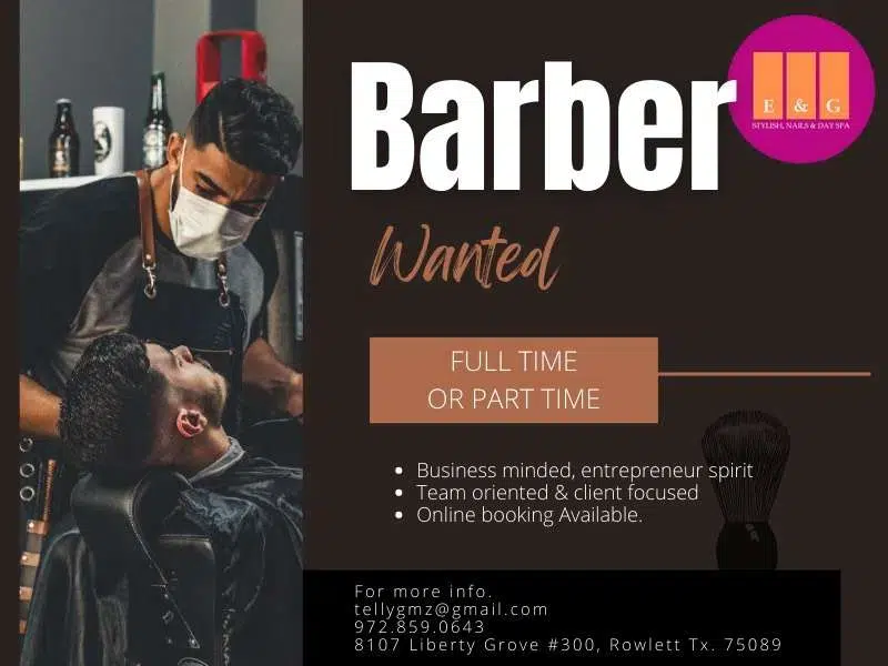 barbers are needed at our salon, fully qualified and with a license !:)