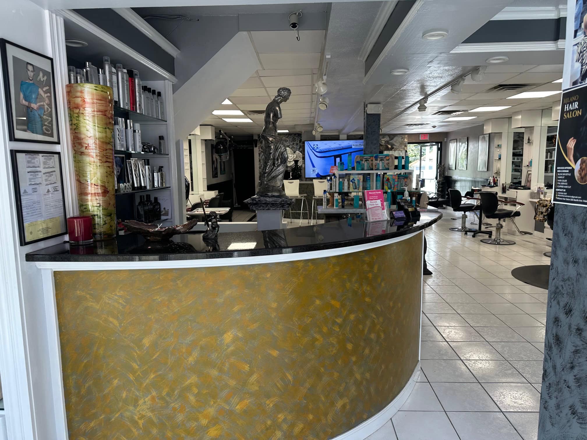 Chair for rent in a clean, friendly salon on North Ave in Wakefield. Great spot for an independent stylist looking for a professional space to work and build clientele. Convenient location with a relaxed, easygoing salon environment. Chair includes access to hair sinks and on-site laundry. Flexible schedule available. Parking nearby.