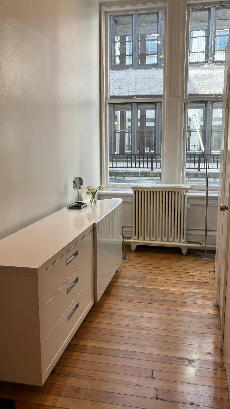 Beautiful private studio that you will have to yourself. High ceilings. Lots of light. Large modern white brow counter from Ligne Roset, and a second room for facials or lashes. Historic building with gorgeous pre-war details. Located in Noho on the corner of Broadway and Houston. Extremely central.