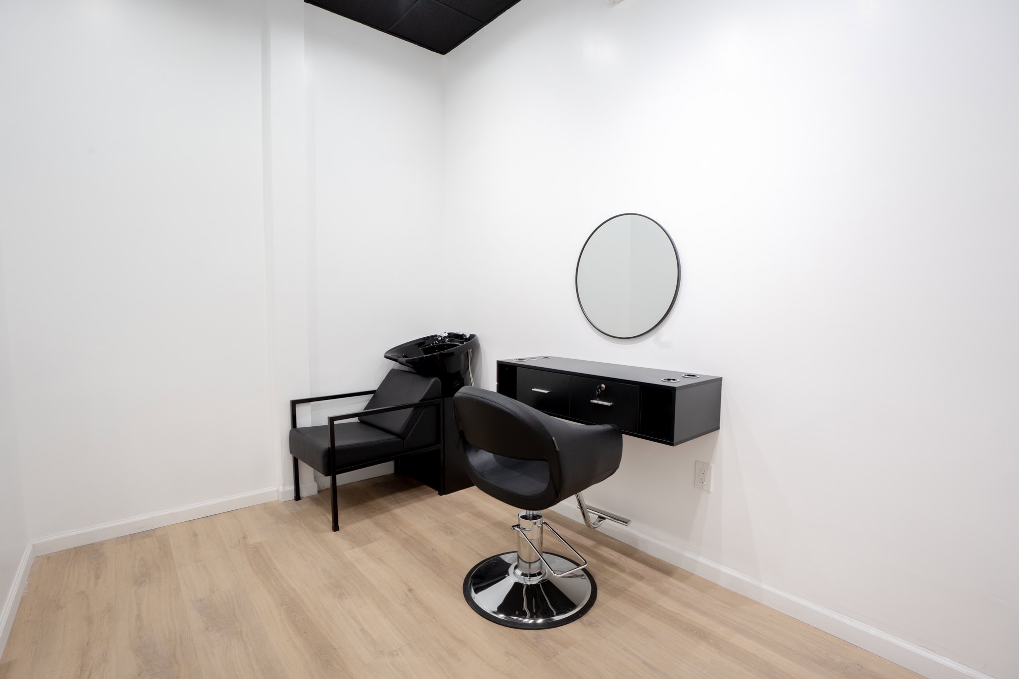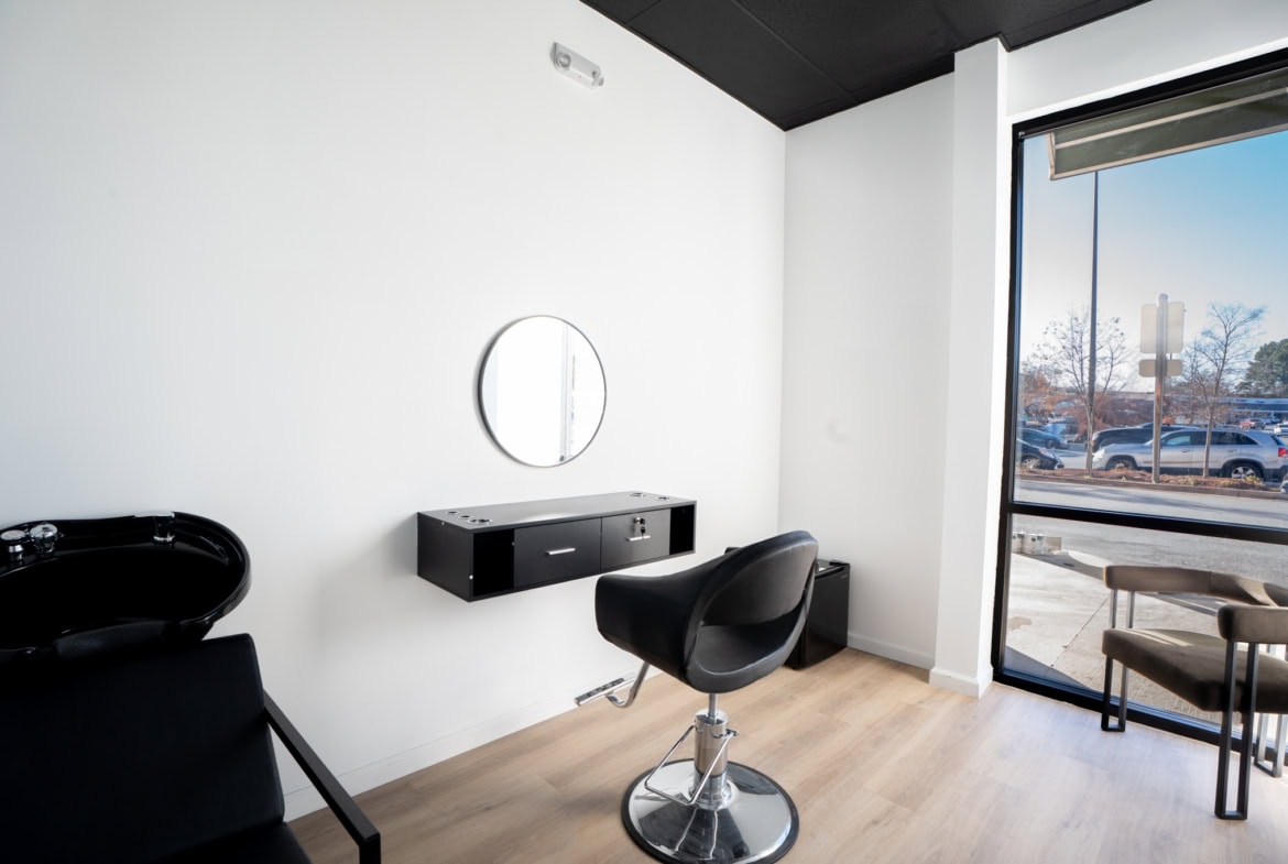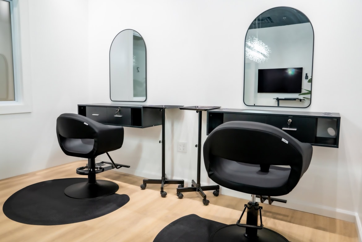 • Private suites with shampoo bowls and premium equipment