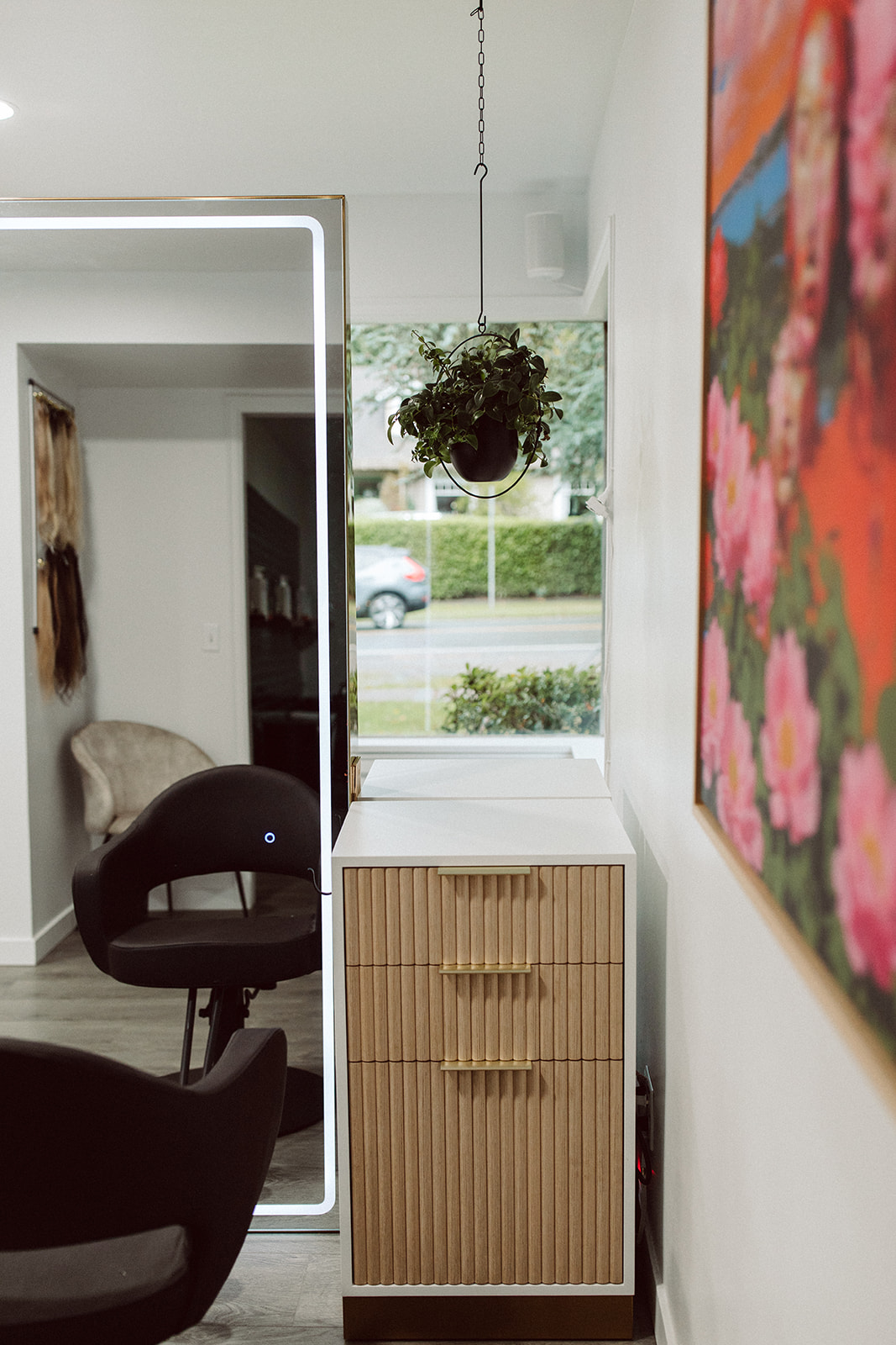Rent includes all utilities, wifi, booking and front desk services. Shared amenities include client refreshments, two waiting areas, two bathrooms, laundry room, break room, extra storage space, private backyard with patio, client parking and retail space if needed.