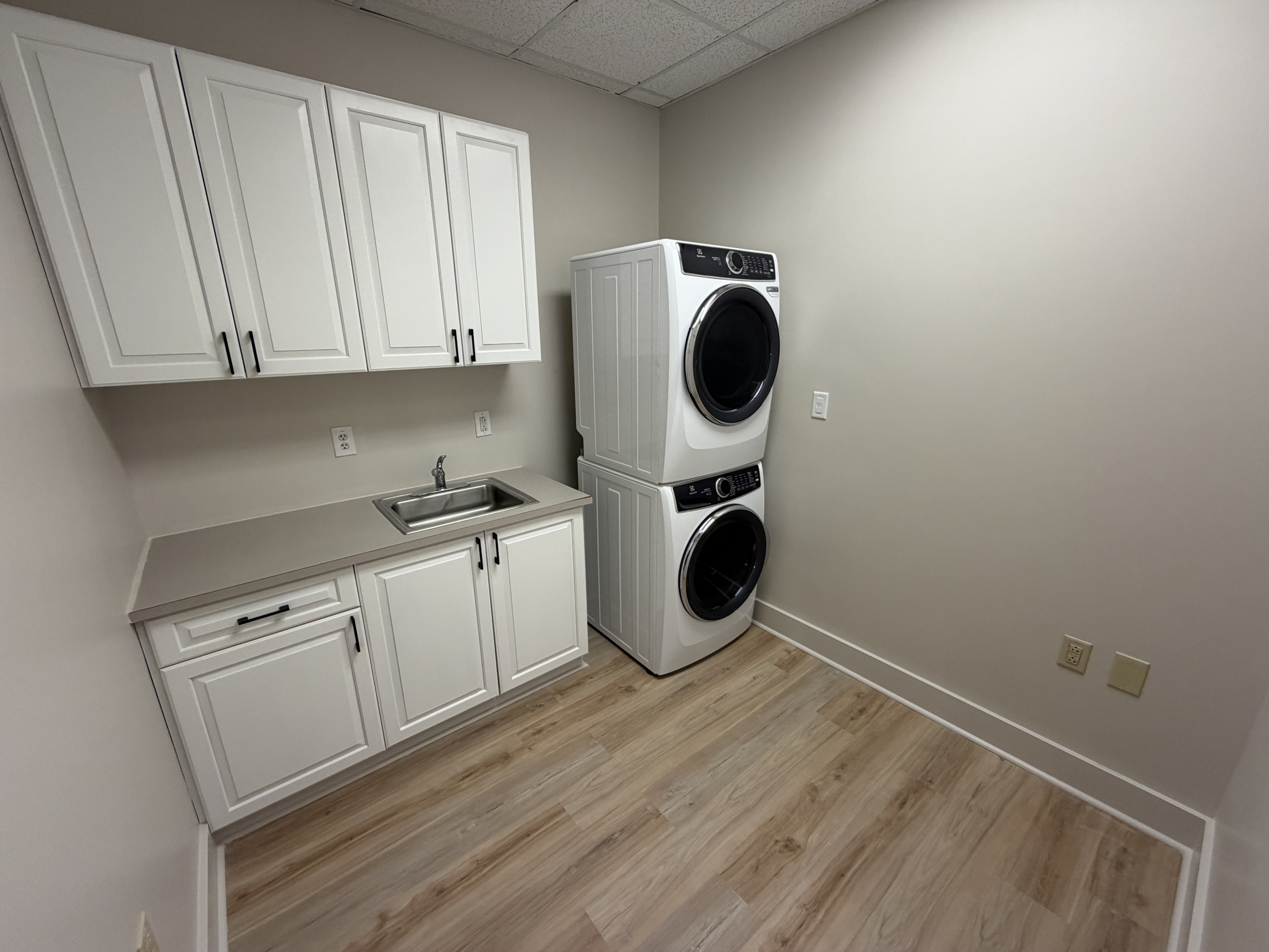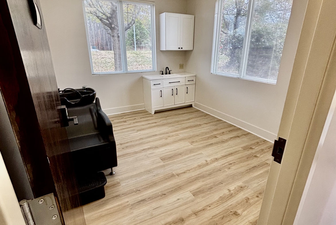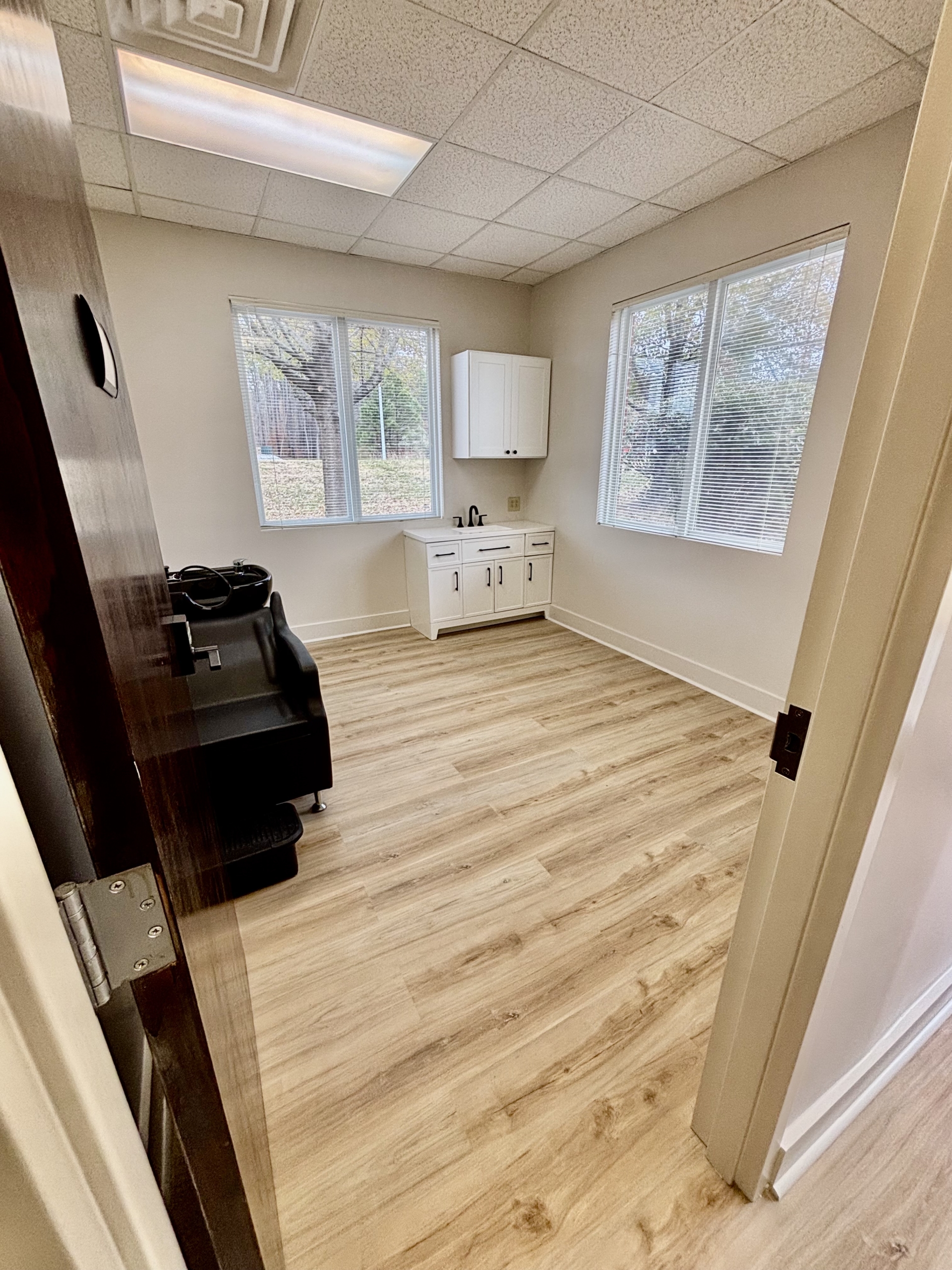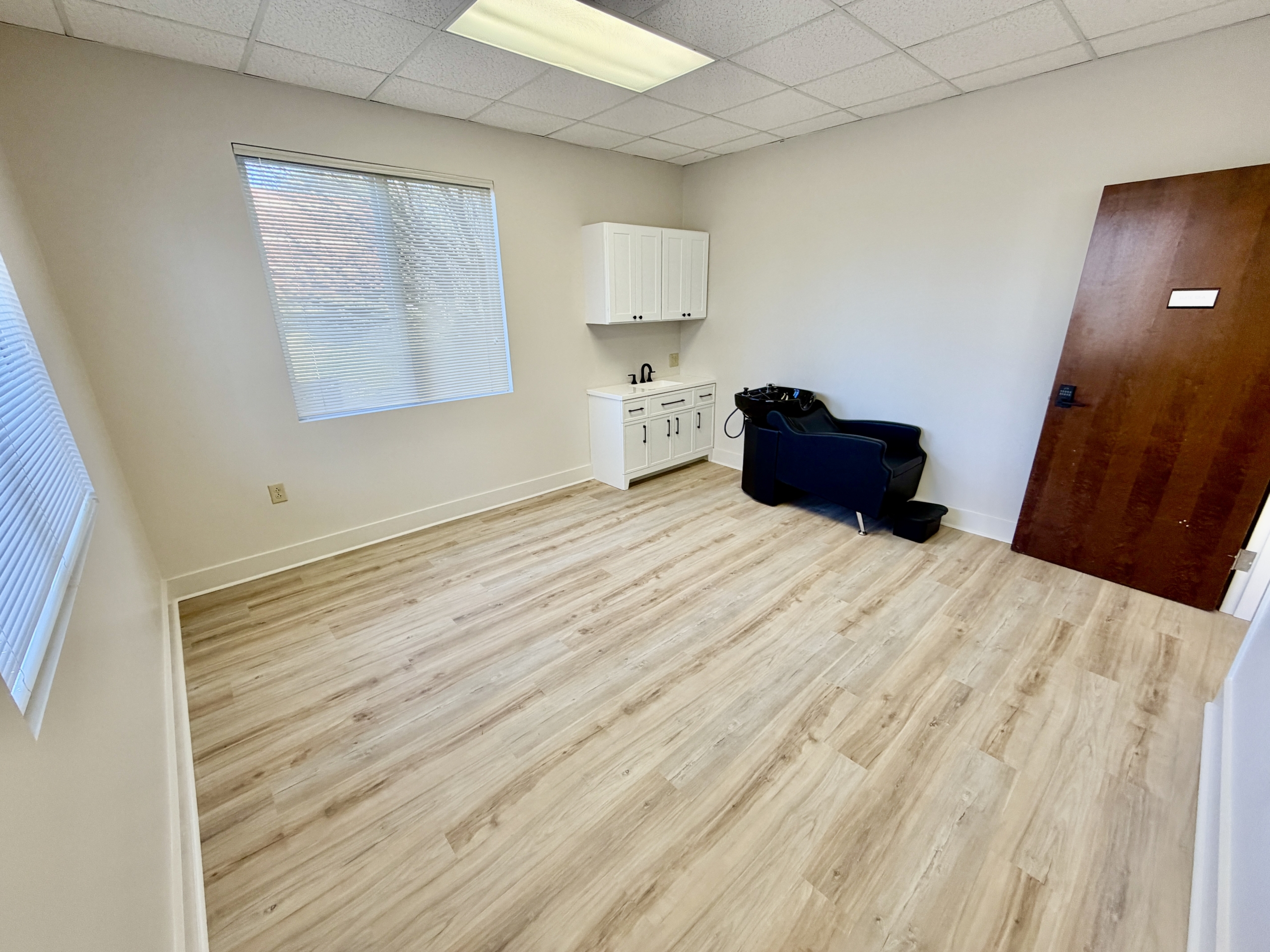 This location is specifically for hair stylists and we have 8 private suites complete with hair washing sinks and most of the suites also have sink cabinets and upper storage as well.