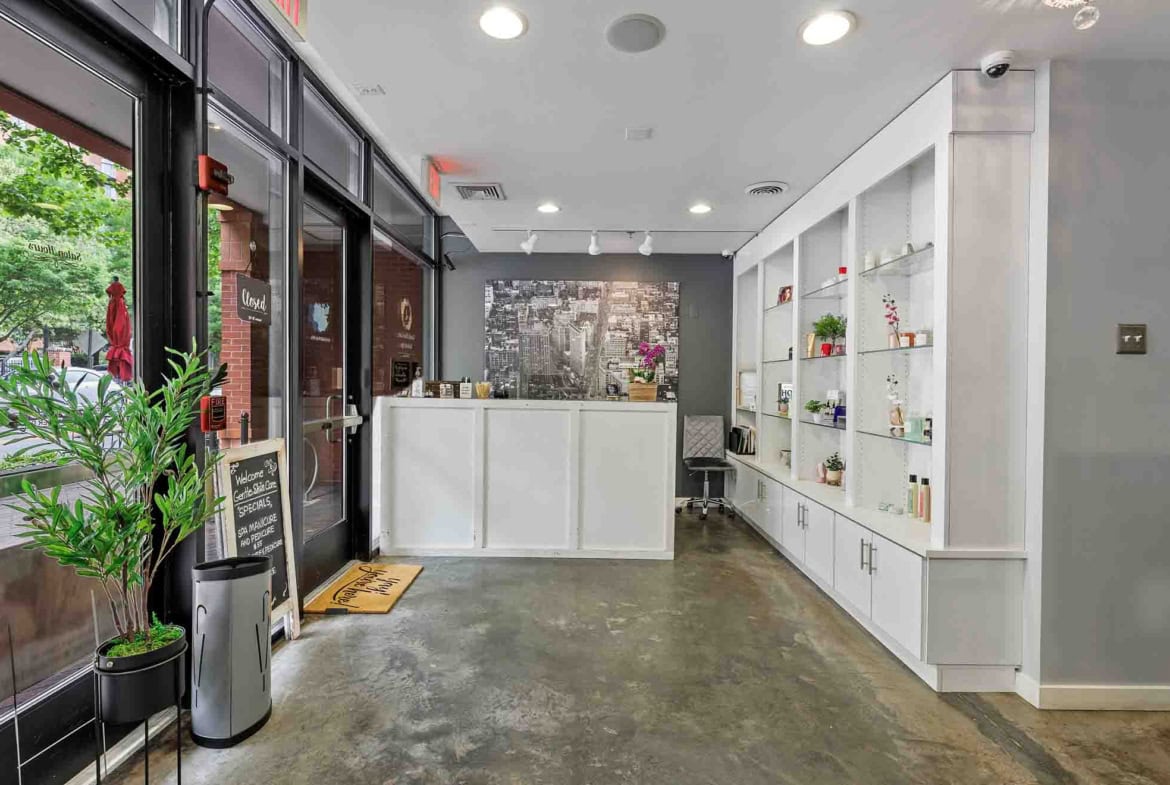 NEW PRIVATE SUITES AVAILABLE – Arlington, Virginia – Two private rooms available soon, the rooms are located inside the 4:14 Salon & Spa (updated photos upcoming after minor renovation). Each of the rooms has a sink with faucet, counter space, and corner storage above and below the sink area, with an overall room measurement of approximately 8 x 10’. Move in ready professional private salon/spa studio space for rent in upscale Clarendon metro area of Arlington, VA. Perfect for Beauty Professionals of all types and particularly well suited for Aestheticians, Medical Aestheticians, Wax Technicians, Makeup Artists of all types, and Eyebrow & Eyelash Artists.