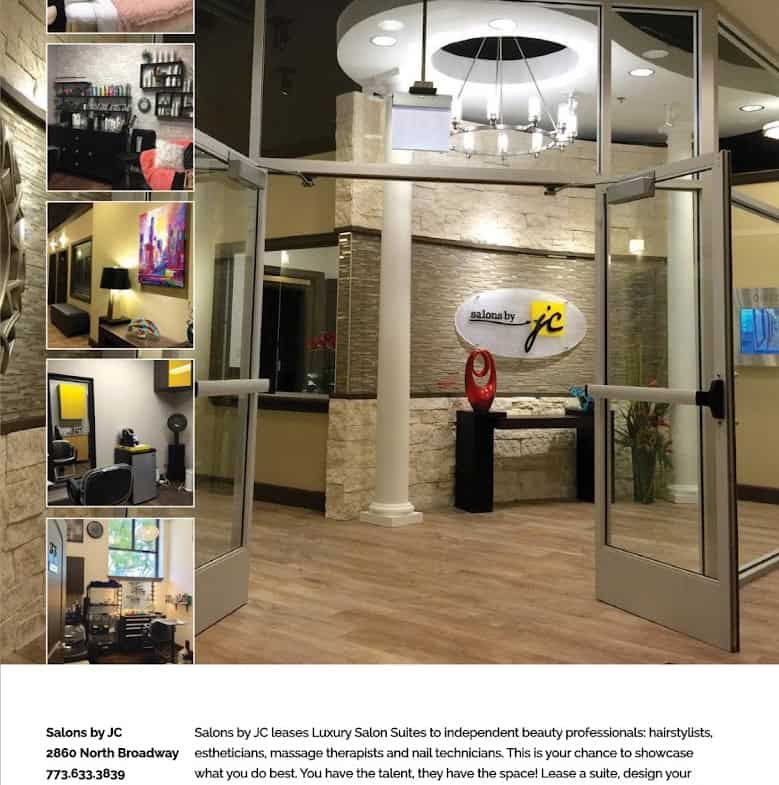 Salons by JC in Chicago, Illinois has salon space available for rent. Salon suites provide beauty professionals with their own private studio — a turnkey space to serve clients and grow your brand independently.