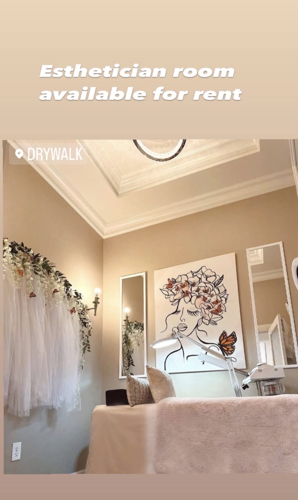 includes ; Salon chair, back bar, towel service, wi-fi, private bathroom, complementary coffee & drinks for clients & waiting lobby,